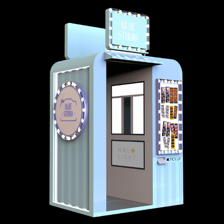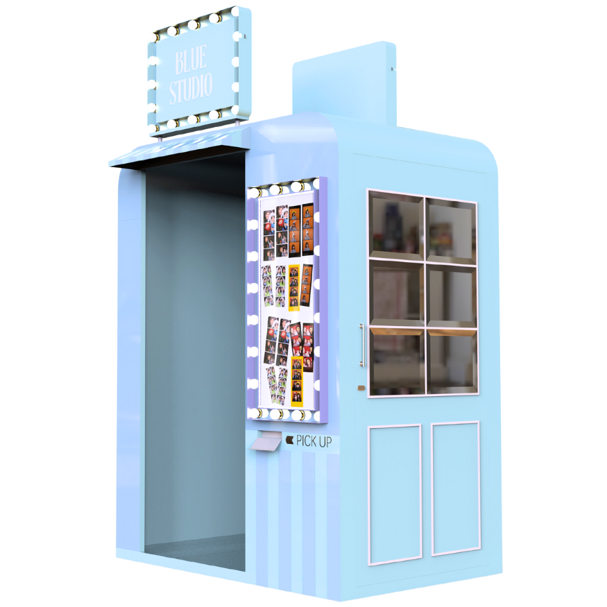 Le Photomaton Blue Studio s'adapte parfaitement à divers événements et environnements, comme les mariages, les fêtes d'entreprise, et même comme installation permanente dans les centres commerciaux.