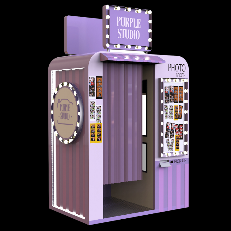 Sophistiqué et moderne, notre Photomaton Purple Studio sublime vos événements avec une touche violette distinctive et mémorable !